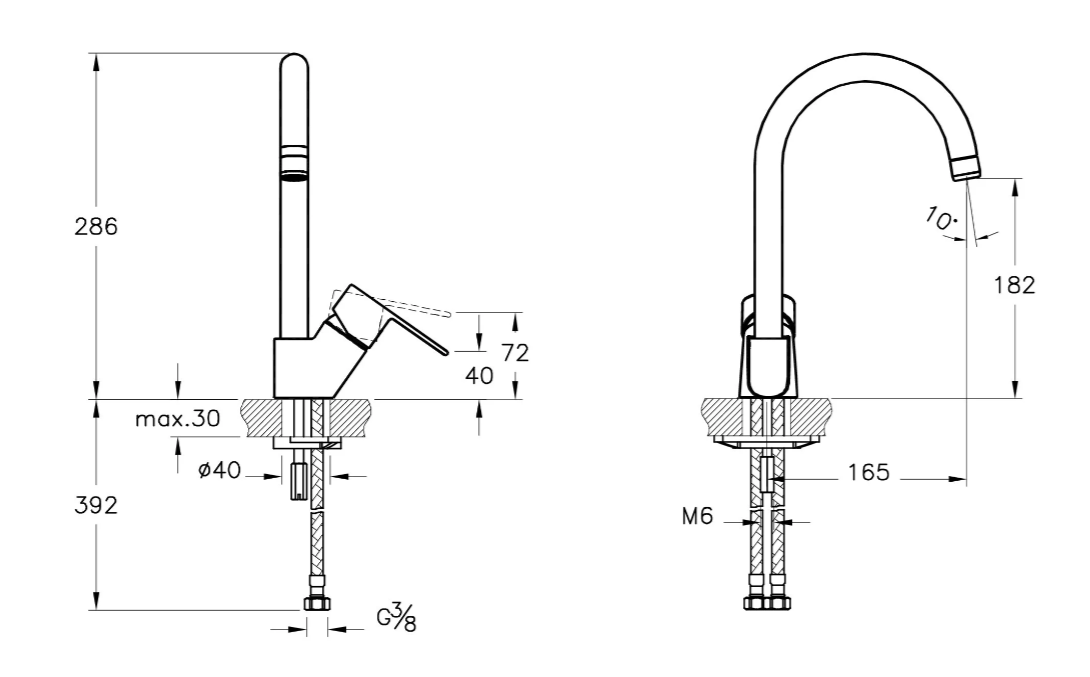 - Çıkış ucu yüksekliği 182 mm'dir.
