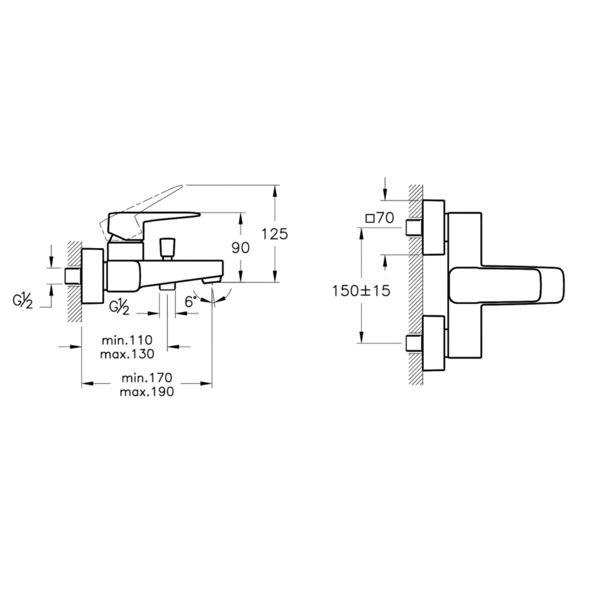 - El duşu çıkışı G 1/2”tir.