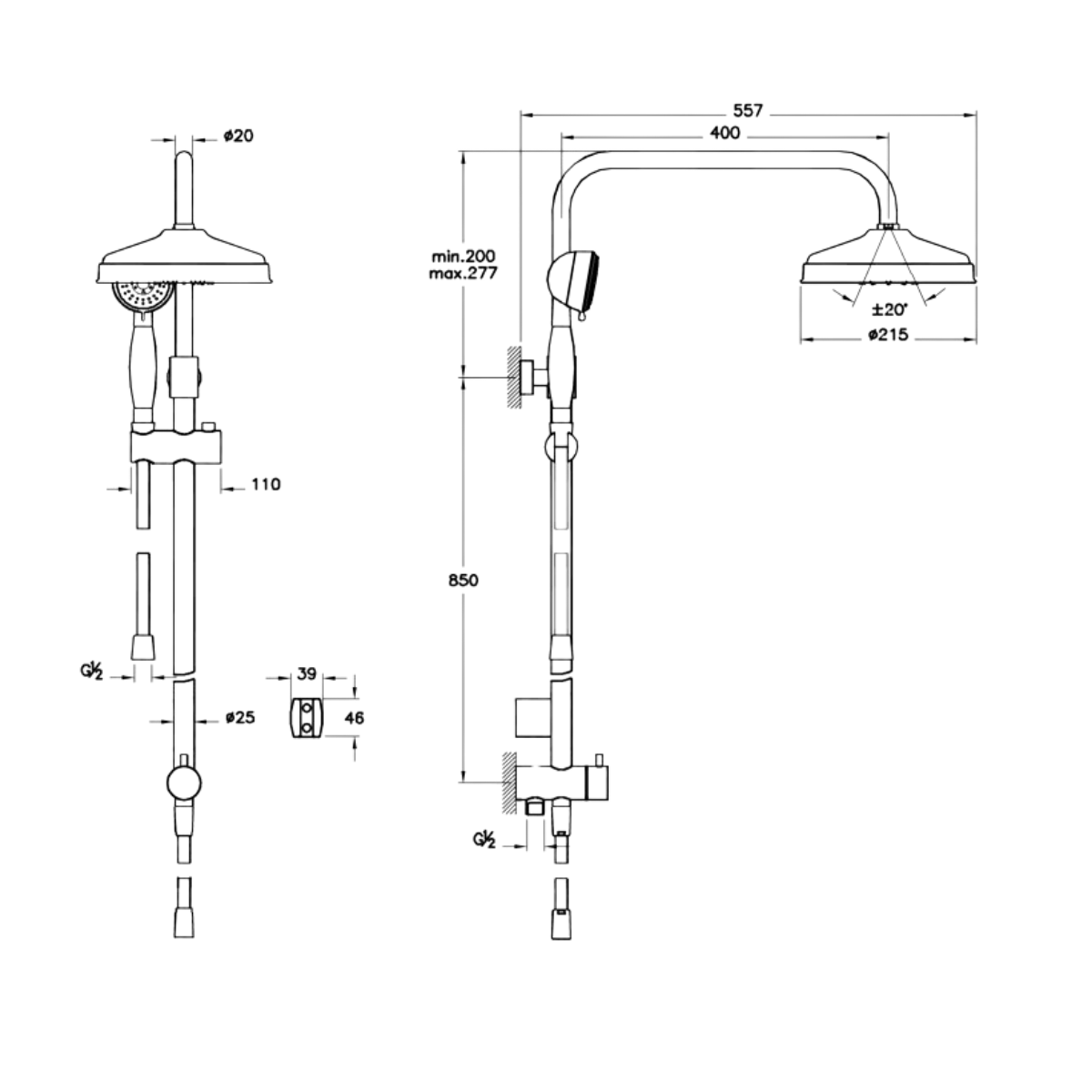 - Duş başlığının yukarı-aşağı yükseklik ayarı için teleskopik özellik