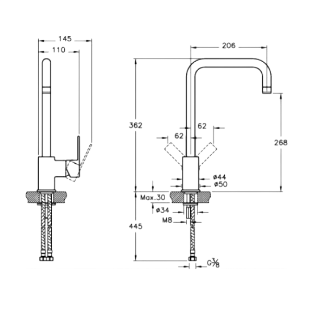 - Sıcak ve soğuk su için fleks hortum bağlantılarına sahiptir.