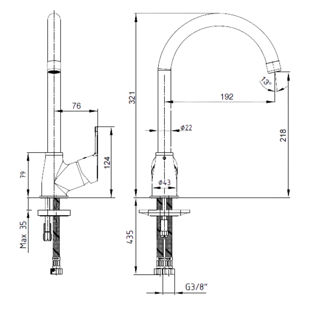 - Çıkış ucu yüksekliği 218 mm'dir.