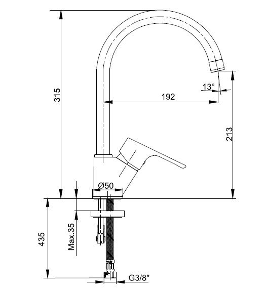 - Çıkış ucu yüksekliği 213 mm'dir.