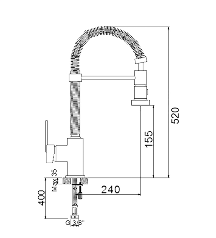 - Çıkış ucu yüksekliği 155 mm'dir.