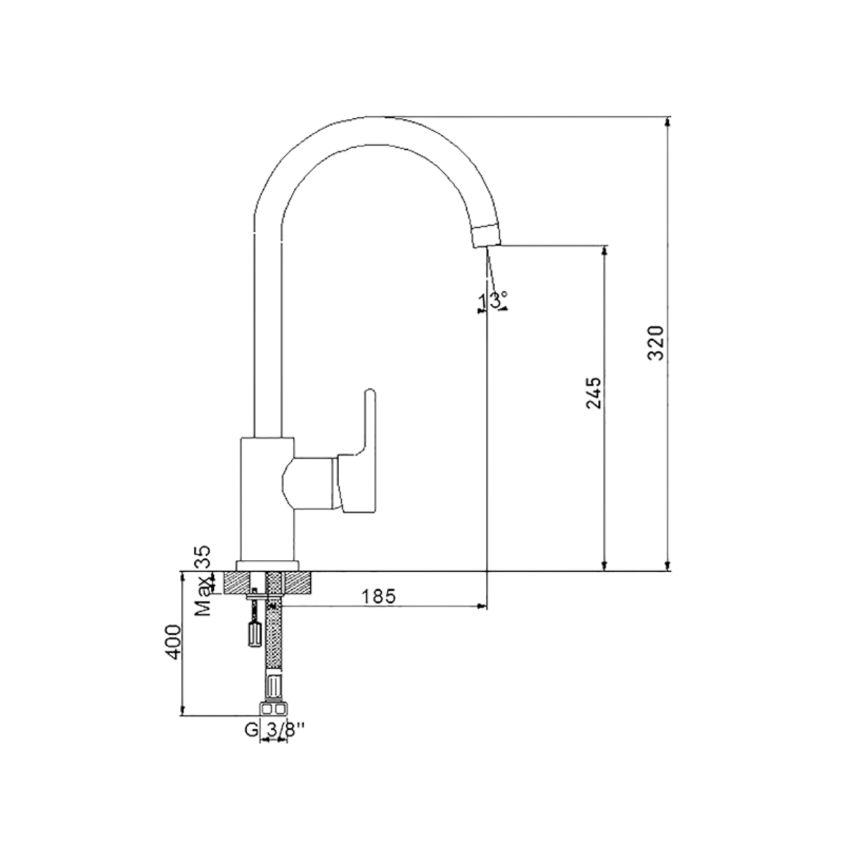 - Çıkış ucu yüksekliği 245 mm'dir.